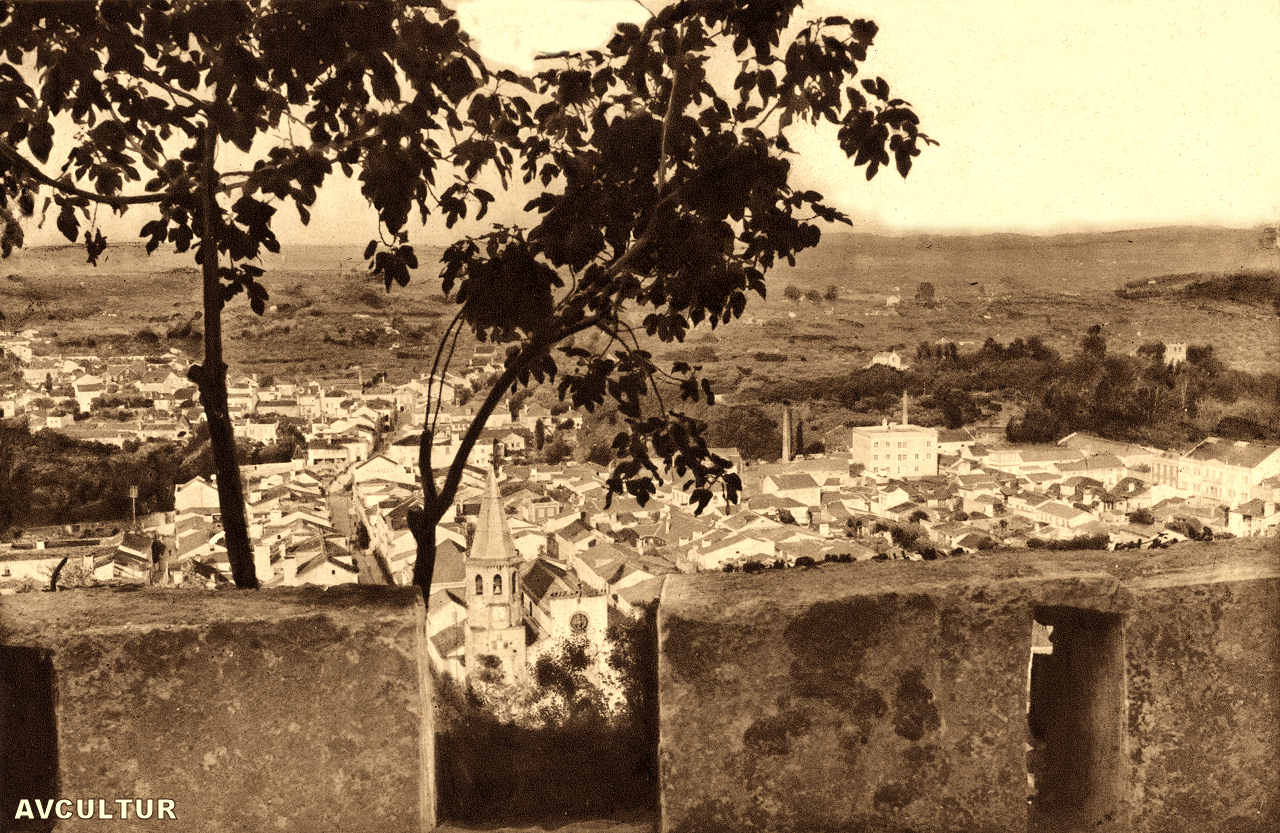 Uma velha ameia do Castelo, emoldurando a igreja manuelina de S. João Batista.