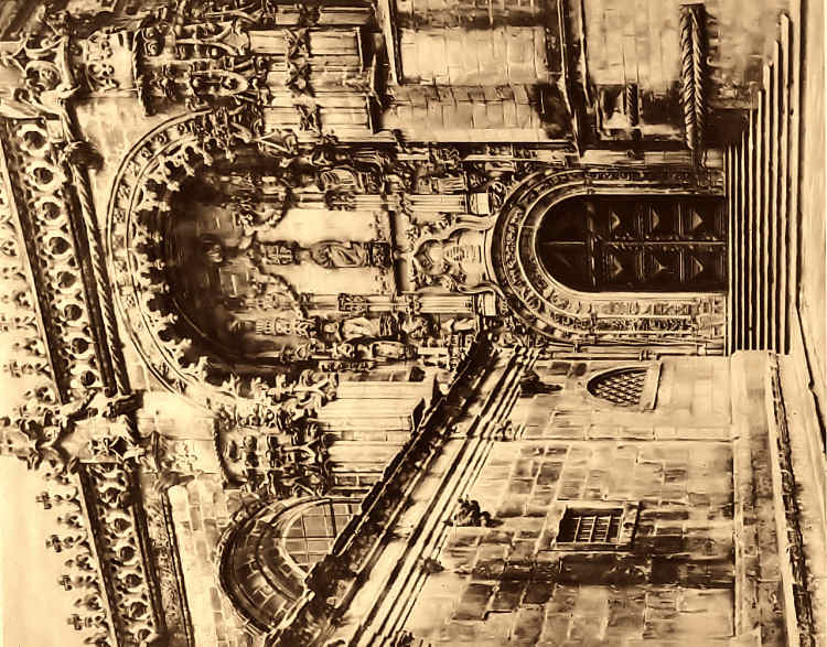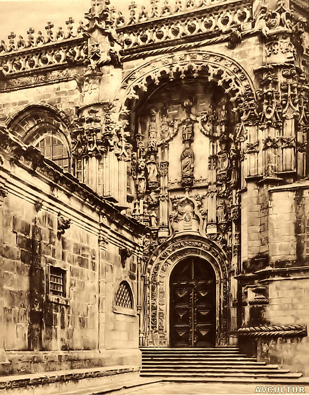 Le portail figuré. Balustrade aux sphères armilaires et la Croix du Christ.