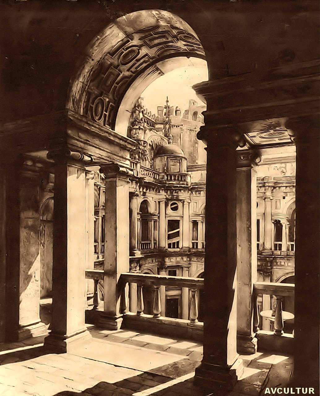 A view of the chief cloister wich recalls the grandeur of Rome.