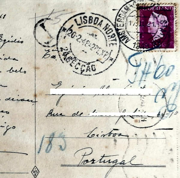 Postal enviado de Roterdão em 20-02-1948, Dim. 150x100 mm, col. Maria João Dias.