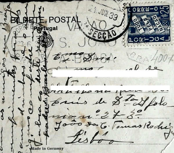 81. SN, Braga - Bom Jesus (Cinco sentidos) Postal fotográfico circulado em 1939, DIm. ??x?? mm, Col. M. João Dias. VERSO
