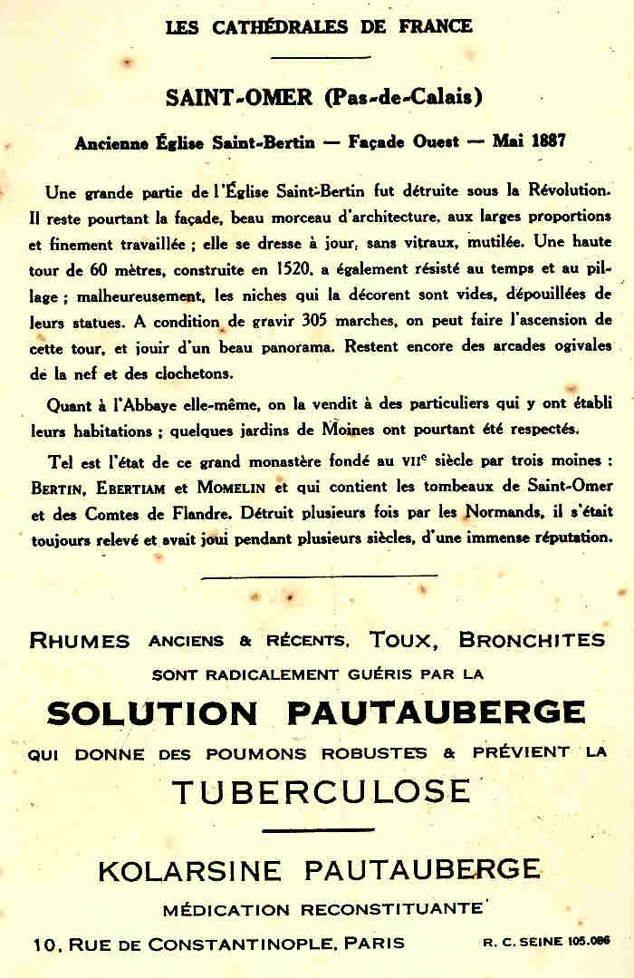 Antiga igreja São Bertin, Col. de la ..., SD, Dim. 137x87 mm, Col. HJCO. Vd.