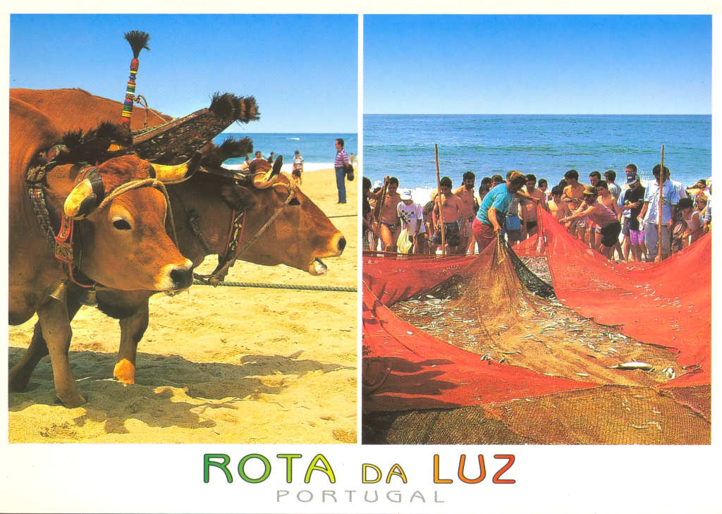 DA LUZ Arte da Xávega. Bois alando a rede e abertura do saco,