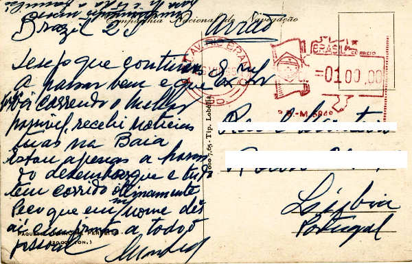 Impresso na Tip. Lobélia, Dim. 143x92 mm, Col. Amílcar Monge da