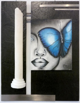 Título: Metamorphosis – Técnica: Óleo sobre tela e escultura – Dim. 60x49 cm – Ano: 2019