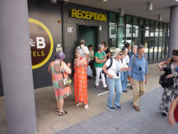 1. Últimas instruções a todo o grupo antes da saída para a visita. Panorâmica. Clicar para ampliar. (08:40:39)