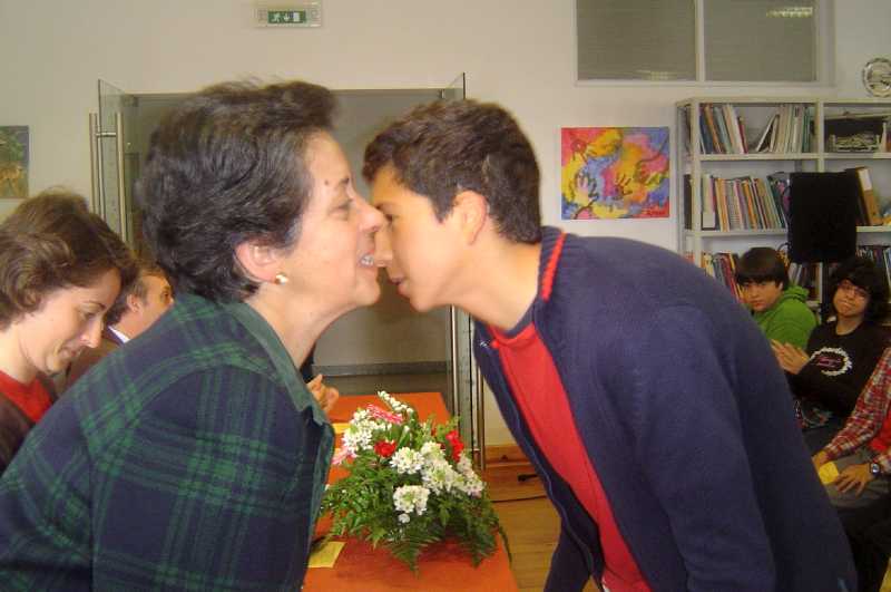 Prof. Aurora Cerqueira lê excertos da obra de Mário Sacramento.Almoço biológico.Preparativos para as sessões da tarde.Representantes da Associação de Pais e Encarregados de Educação entregaram uma rosa a cada professor.