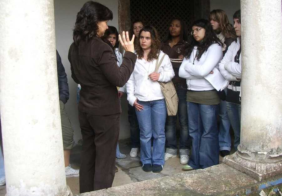Claustros do Museu de Aveiro - Explicação da Dr.ª Maria João ouvida atentamente pelas alunas.
