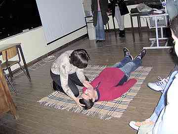No dia 24 de Março, a Cruz Vermelha Portuguesa de Aveiro deslocou-se até à nossa Escola, a meu pedido, a fim de efectuar uma acção de sensibilização aos primeiros socorros, perante a turma do 9º B.Na sala 9, deu-se assim o que eu chamaria uma "aula base" de socorrismo. As formadoras dessa associação não Governamental começaram por nos ensinar a fazer uma chamada de socorro para o 112, pois esta, gerida de uma maneira explícita e cuidadosa, pode vir a salvar a vida de uma vítima.
