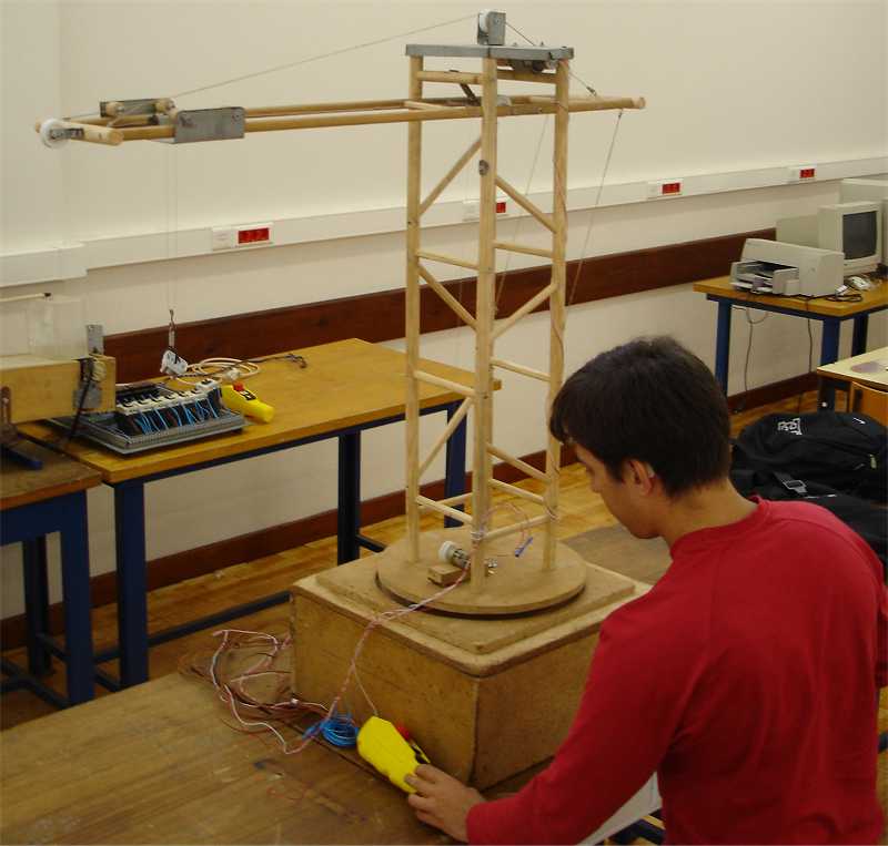 André Gonçalves apresentou um modelo de grua utilizada para movimentar cargas. É composta por um mastro/torre vertical e uma lança que se posiciona e move na horizontal. O conjunto gancho/cabo é o responsável pela elevação das cargas. O operador da grua pode controlá-la directamente ou à distância, através de uma betoneira que lhe dará ordem para subir e descer a lança, subir e descer o gancho e rodar a lança para a esquerda e para a direita, em torno de um eixo vertical. Os movimentos são executados através de três motores eléctricos monofásicos de 230, 24 e 12V de potência. n