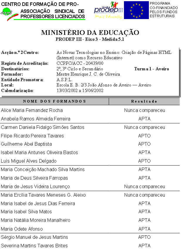 Parte do relatório de avaliação da Acção 2 - 2002