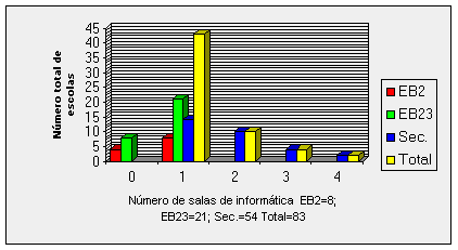 Figura 13: Número de salas de informática por escola. A análise do quadro 5, do gráfico da figura 13 e do mapa 6 permite-nos