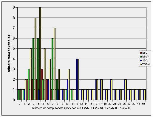 de computadores por escola está compreendido entre 2 e 7; no nível EB23, à