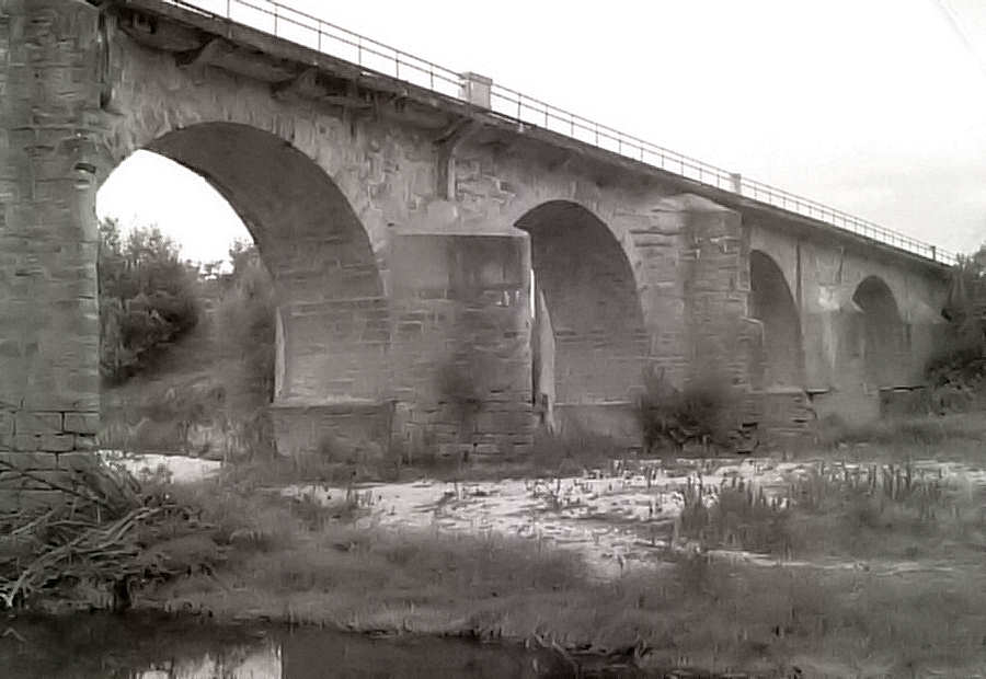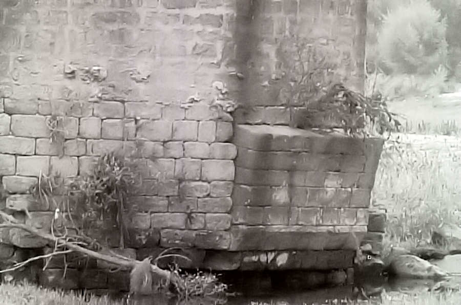 Pormenor da base de um dos pilares da ponte de Vouga, onde é bem visível alguma degradação