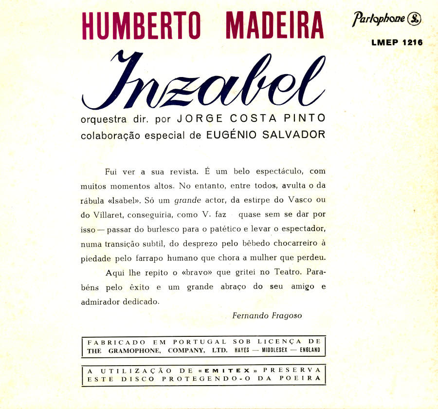 1 - Trechos da Revista "A ponte a pé" b) INZABEL (1ª parte) (Charles Aznavour-Dr. José Galhardo)