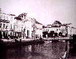 Edifícios da antiga Rua do Cais e Praça do Comércio, por volta de 1920, vendo-se a «Casa dos Arcos».