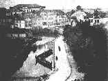 Centro da cidade nos finais do séc. XIX, vendo-se o moinho de marés, o Canal do Cojo e a Ponte das Almas.
