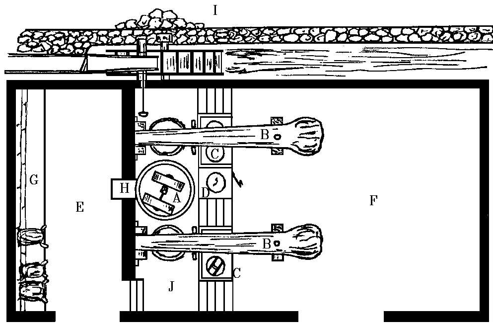 chamado botadoiro, pequena construção de madeira (H) através da