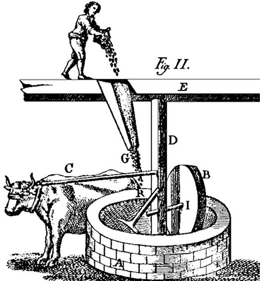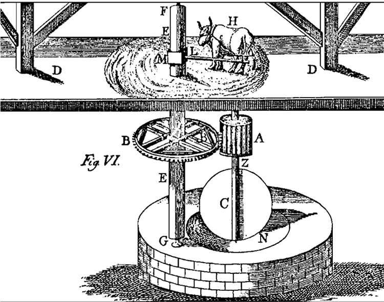 É interessante notar o facto de que os moinhos tocados por animais, que