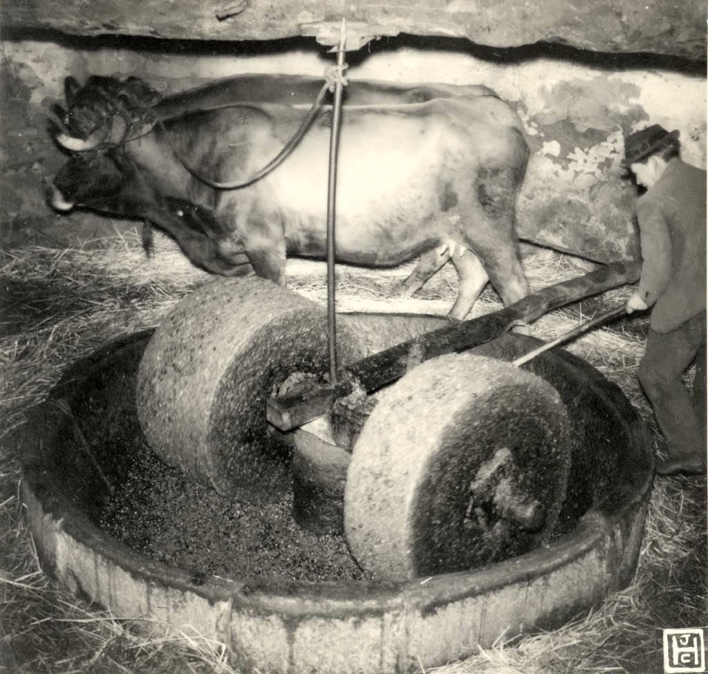 Segundo Dalla Bella(11), em 1784, nos lagares movidos por bois, «com o trabalho de três ou quatro homens apenas se chegava a moer em 24 horas quatro moinhos de azeitonas, havendo  duas varas para espremê-las». Actualmente, os factos pouca mudança sofreram. Vejamos então a conversa que tivemos com um informador no lugar do Dianteiro, P. 256, durante uma visita ao lagar da terra.