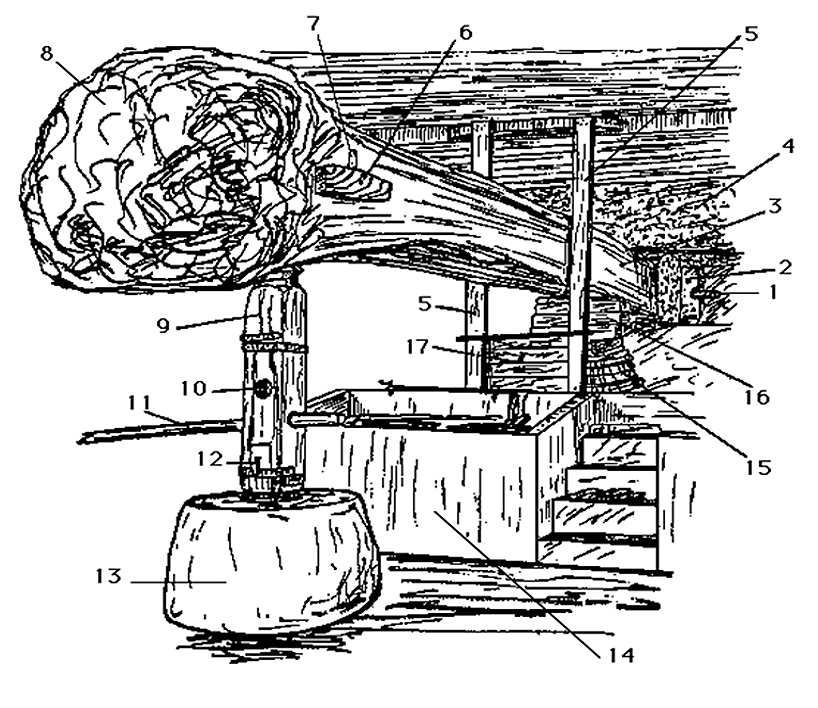 pau da grossura de um braço, introduzido por duas pedras, e com o qual