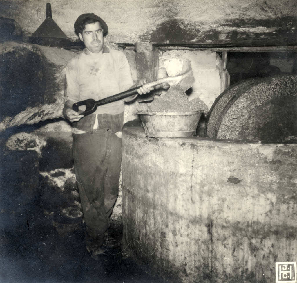 Antes de vermos como decorrem o enseiramento e a prensagem nestes lagares, convém saber como e por quem é retirada a azeitona do moinho, depois de convenientemente reduzida a massa. Esta operação varia muito de lagar para lagar, pelo que iremos procurar descrevê-la de maneira mais ou menos genérica. Desceremos apenas a um ou outro caso particular, sempre que isso se nos afigure conveniente.