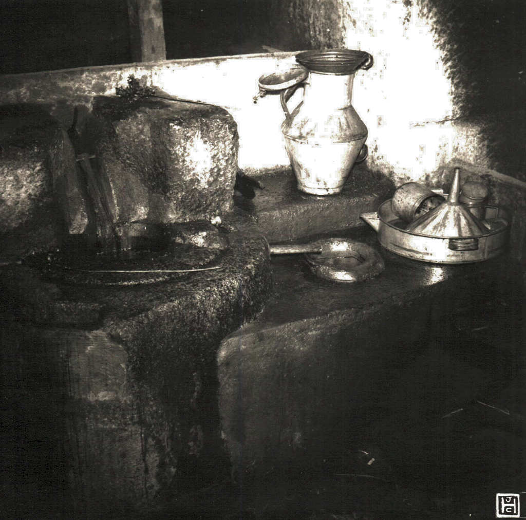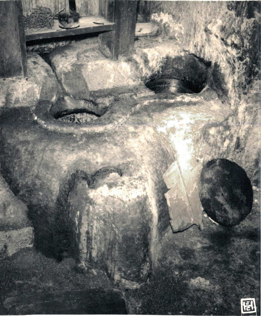 Figura 117: Pormenor da sertã e do pote onde se efectua a decantação, no lagar de Vila Viçosa, P. 116, conc. Arouca, dist. Aveiro.