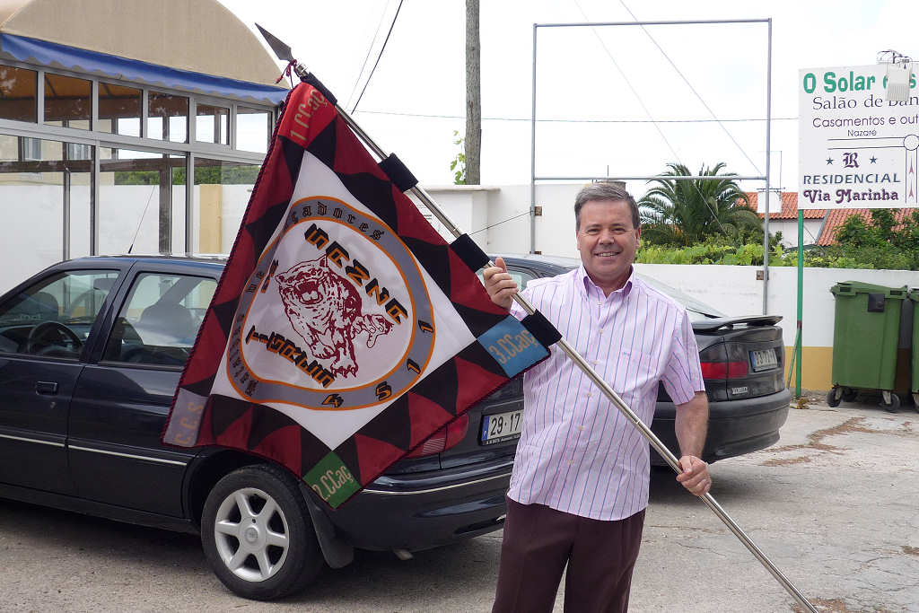 | Chegada do nosso capelão ao local do convívio.