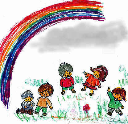 - Agarrar o arco-íris?! Mas isso não pode ser! - Disse. E lá explicou: O arco-íris é a luz branca do sol, que se “desmancha” toda quando passa pelas gotinhas da chuva e apresenta aquelas sete cores que estamos todos a ver, das quais já não posso escolher muito, porque só me deixaram duas! Bom, escolho o laranja. O índigo não fica escolhido. É muito bonito, o arco-íris, pois é! Mas é só para ver, não se pode prender! Portanto, meus amigos, vamos mas é lanchar que a fome já está a apertar...