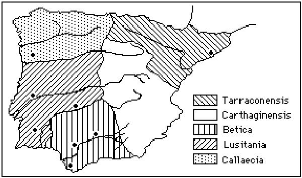 romanos a faixa ocidental da Península Ibérica estava dividida, de Sul