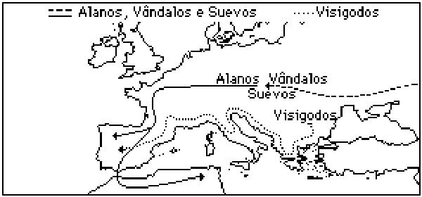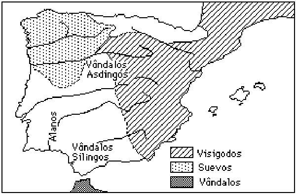 peninsular, ocupando os Vândalos Asdingos e os Suevos a Galécia, os