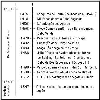 Quadro sinóptico com os principais marcos da expansão portuguesa. |