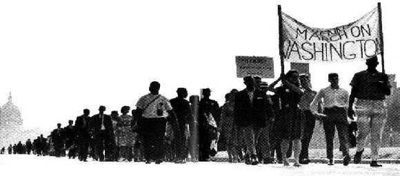 Em Agosto de 1963, mais de 250 000 manifestantes, incluindo 50 000 brancos, vindos de todos os pontos da América, marcharam em Washington. Foi aí, em frente do Congresso, que Luther King pronunciou, perante a emoção de todos os presentes e de milhões de telespectadores, o famoso discurso “I have a Dream...”