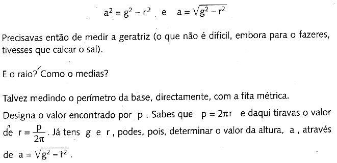 Designa a altura por a , a geratriz por g e o raio da base por r .