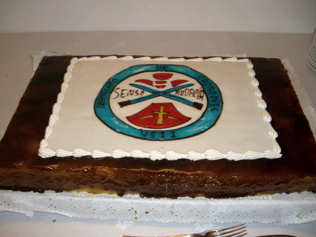 | O Bolo com o lema «Senso e Audácia».