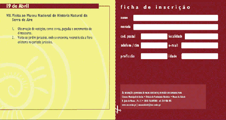 Workshop "As Marcas da Evolução: a Vida, os Hominídeos e os Fósseis. O Contributo dos Fósseis Aveirenses para a Paleontologia" nos próximos dias 7, 8, 9, 10, 11, 17 de Abril, das 18.00 às 20.00 horas, no Museu da Cidade.