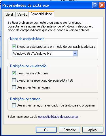 Executar este programa em modo de compatibilidade para: Windows 98 /