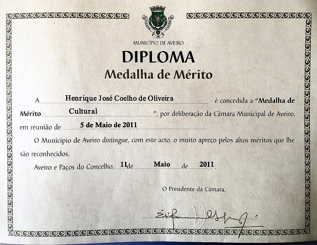 2011 atribuir ao Mestre Henrique de Oliveira a Medalha de Mérito