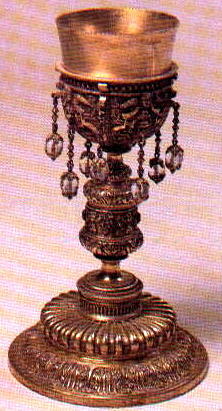 ![]() Em cima, S. Rafael e Tobias; em baixo, cálice com cristais de quartzo pendentes.