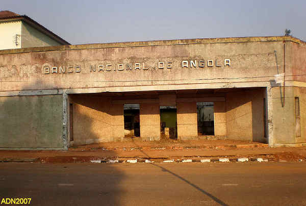 Edifício degradado. Antigo balcão do Banco Nacional de Angola. |