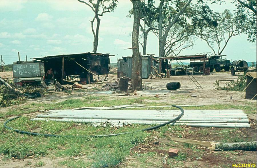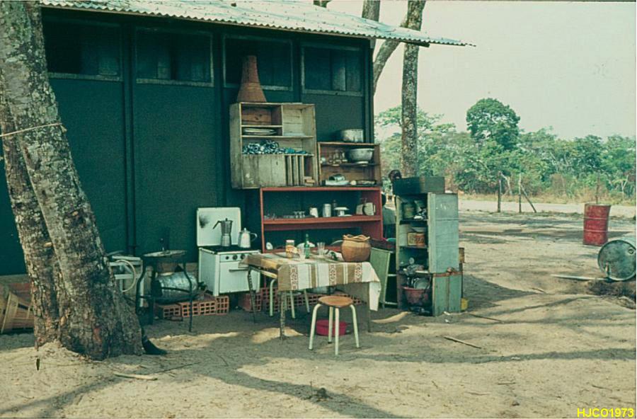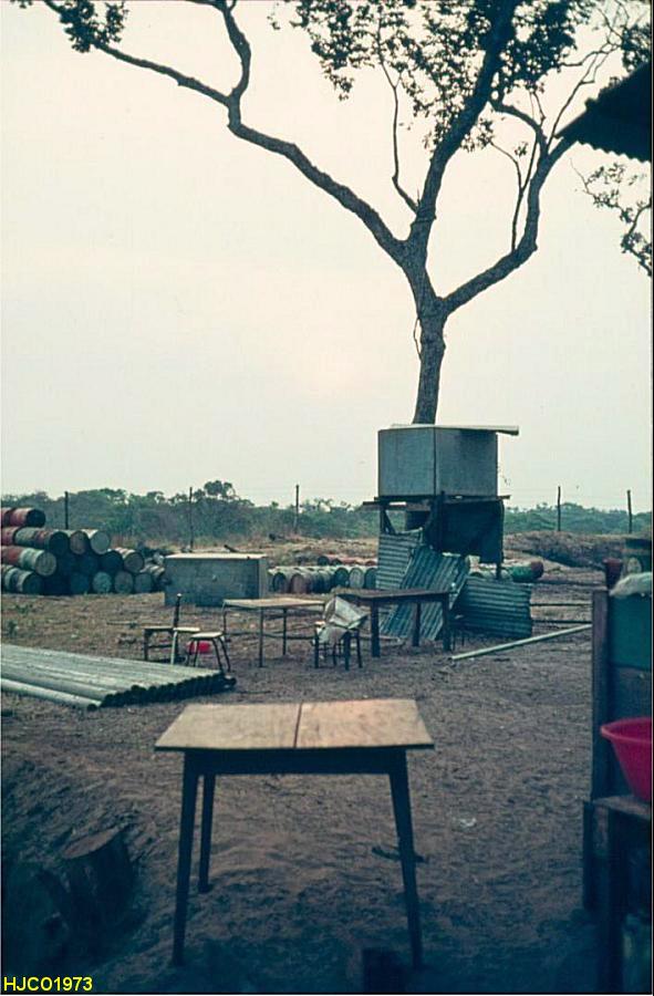 fundo, junto à árvore, os chuveiros onde o pessoal