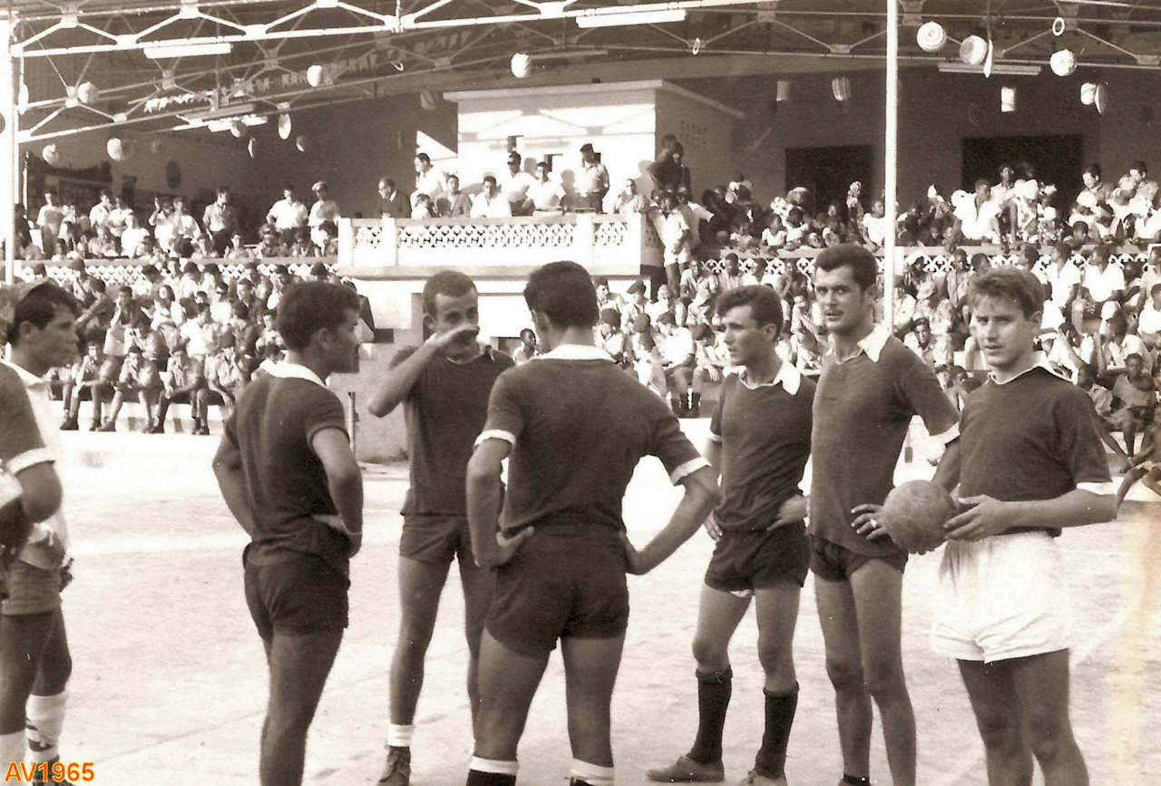 Clube-cinema do Ambrizete, 1965 ou 66. Equipa de andebol da Secção de Radar do PAA 962. Nomes: 1.???; 2.???; 3.???; 4.???; 5.???; 6.???.