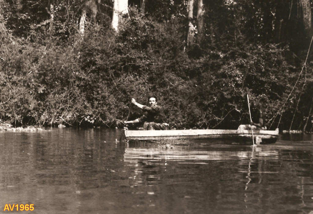 Ambrizete, Foz do M'bridge 1965. Na nova jangada, António Vilela com o saudoso Horácio Garcia Quinaz (sentado), comandante do PAD 921, mais a respectiva cadela.