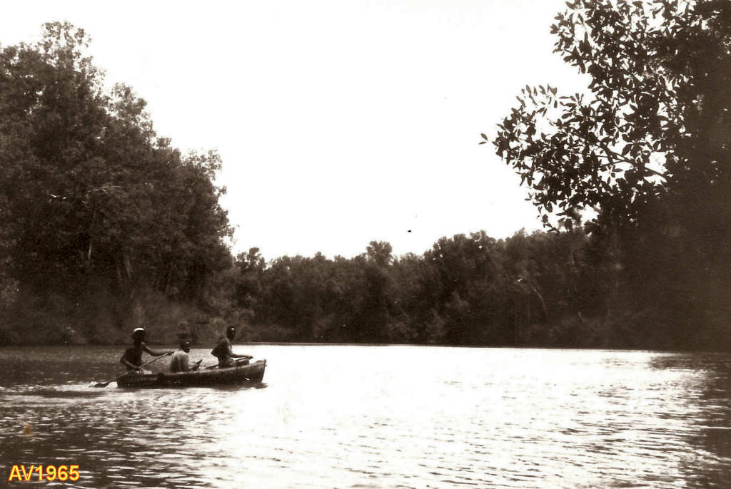 Ambrizete, rio M'bridge, 1965. O cabo (RD) Moura, a caminho da lagoa do Saca, para uma caçada aos crocodilos e hipopótamos.