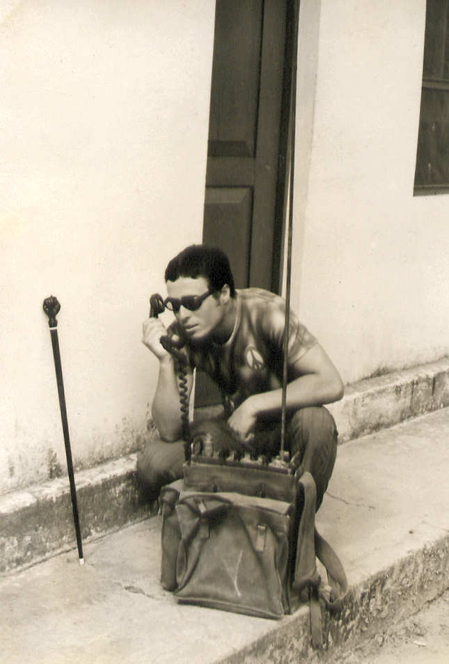 Na entrada da pensão em Ambrizete. Da esquerda para a direita: 1º cabo Rodrigues, o Mário e o Pereira.