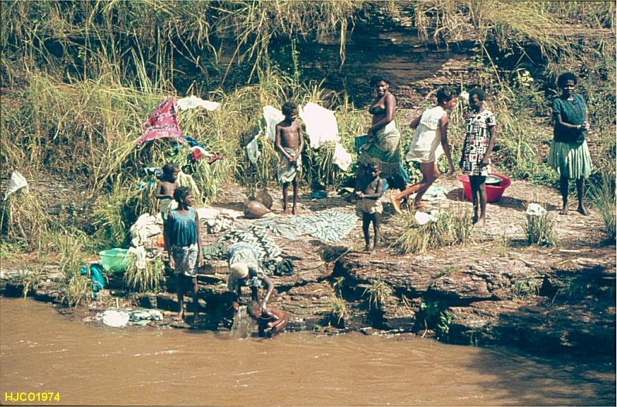 Panorâmica geral do curso de água e da margem do riacho que corre próximo de Bange Angola. Henrique J. C. de Oliveira - 10/04/1974. Ficheiro: Bange06.jpg - 138 KB
