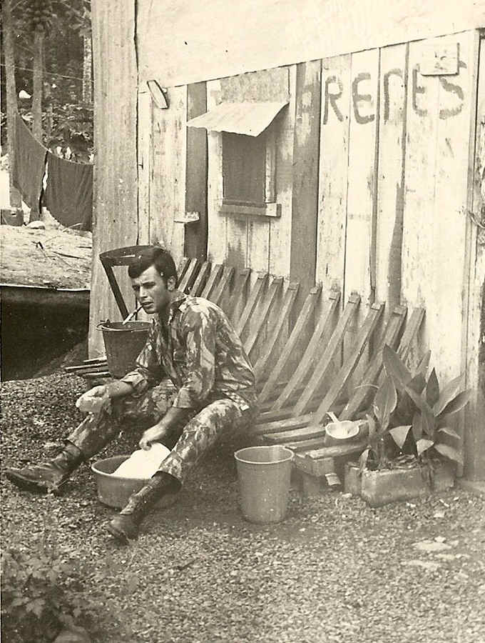 Alpoim lavando a sua roupa (a lavadeira teria feito greve?). Amadeu Alpoim - 1971. Ficheiro: 20_BeiraBaixa.jpg