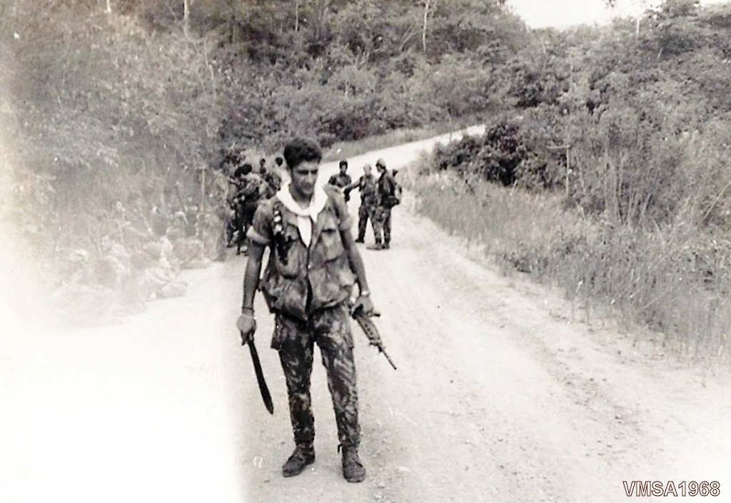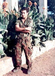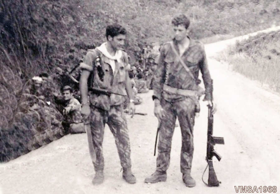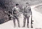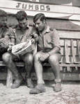 Vítor Manuel da Silva Abreu lendo as notícias com um camarada junto ao hotel Jumbos (a caserna).