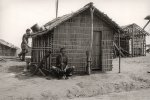segundo plano, a estrutura de uma cubata em fase