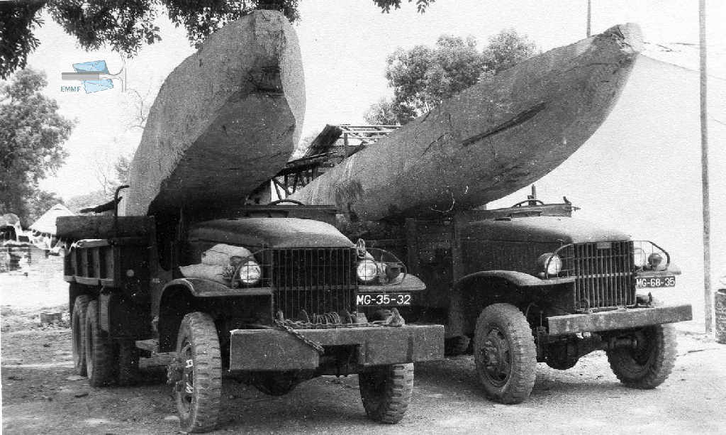 A historia é bem conhecida, mas esta foto não. Trata-se das duas canoas gigantes sobre as quais se construiu a famigerada jangada que se virou na retirada de Madina do Boé da nossa Companhia 1790 do meu Batalhão 1933.